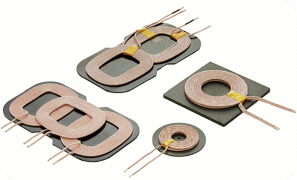 Wireless Charging Coils are essential electromagnetic components used in wireless power transfer systems, such as Qi-enabled car or mobile wireless chargers. These coils enable inductive charging by creating a magnetic field that transfers energy from the transmitter (charging pad) to the receiver (device battery) without physical contact.